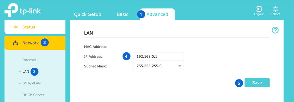 Before changing it, save your current settings. After the change, the router usually reboots, and you must log in again using the new IP address.
